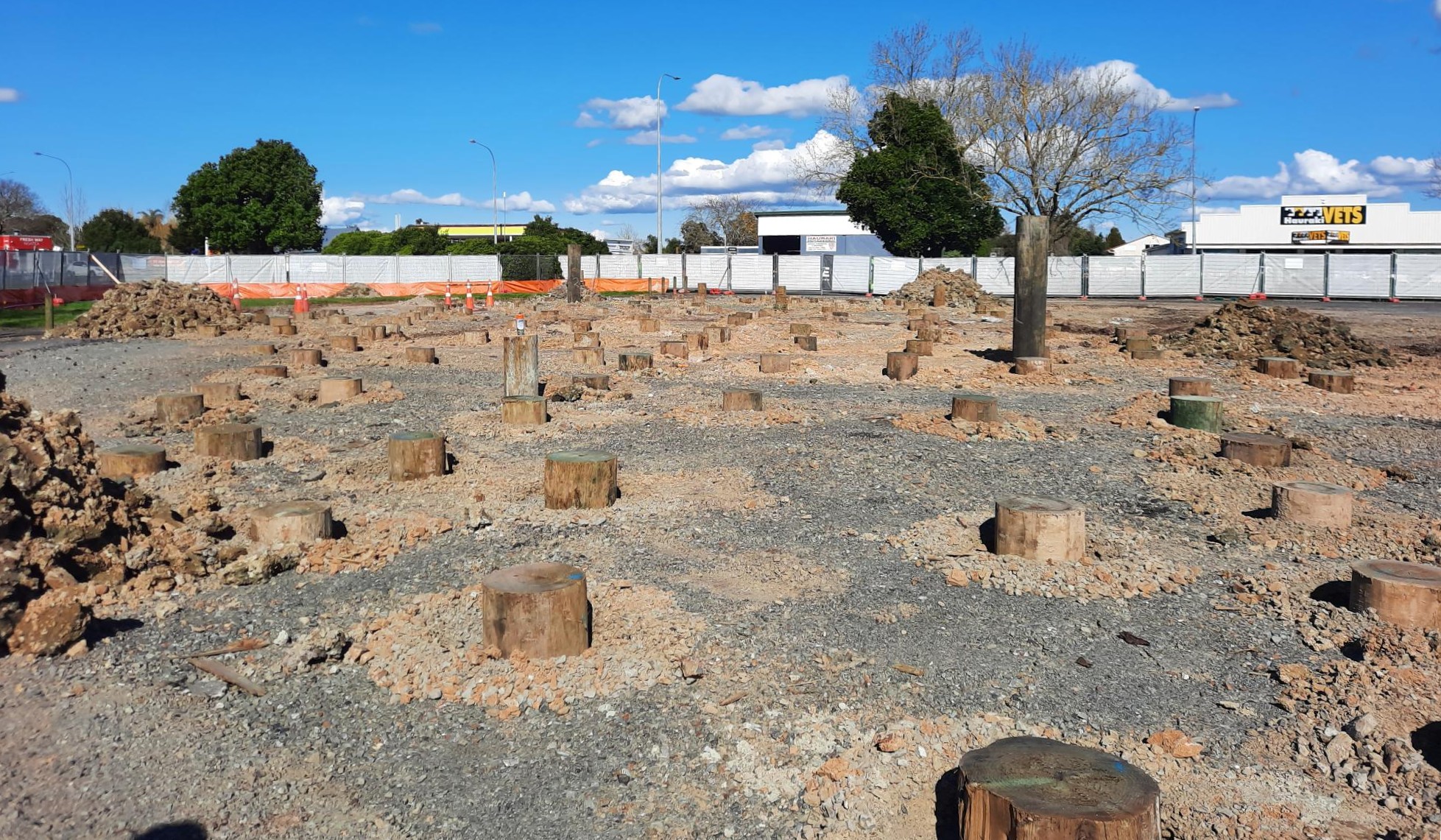 The winter weather hasn't slowed progress on site. As at August, all the piles for the new building are in.
