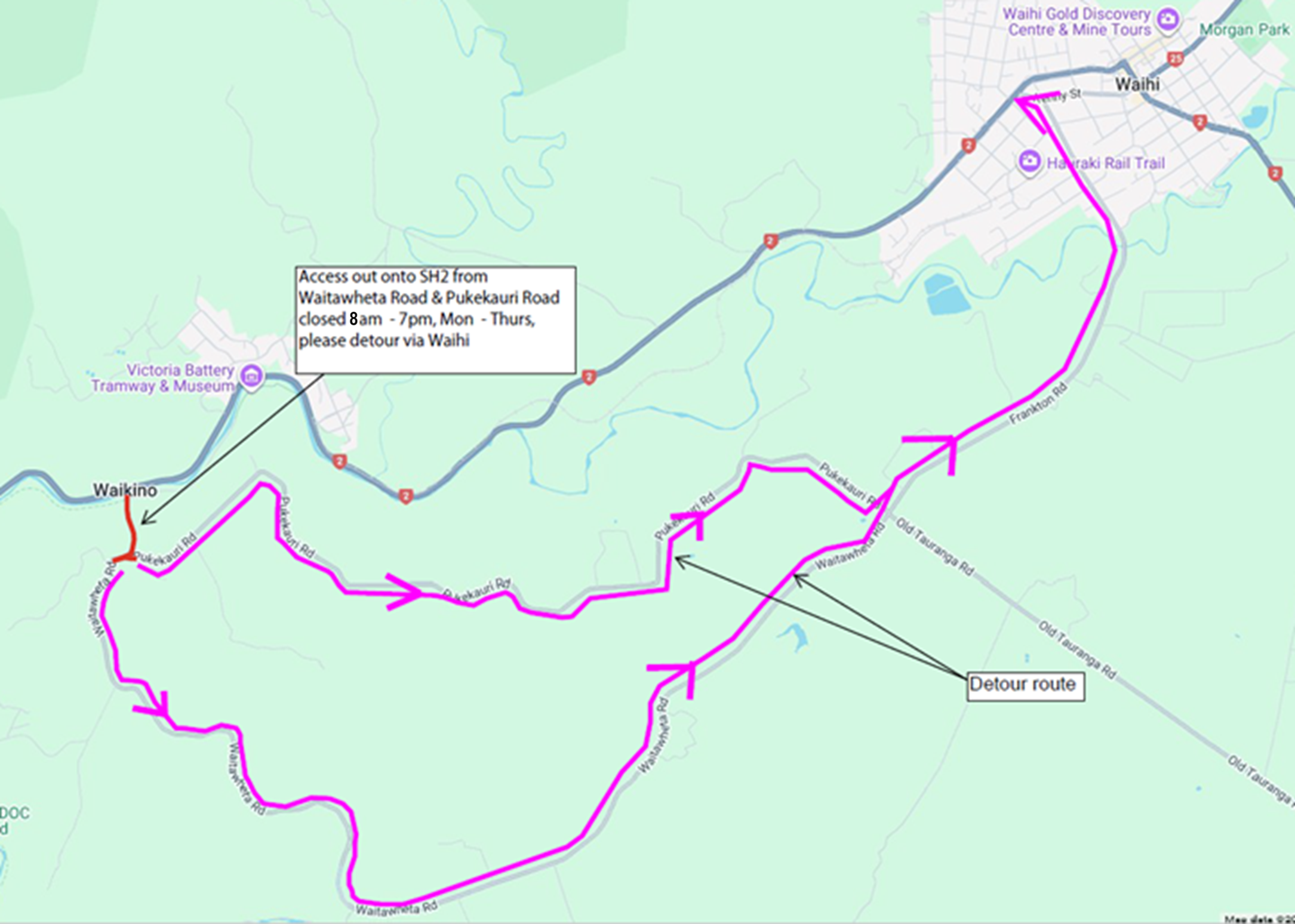 Waitāwheta Road - Detour Route
